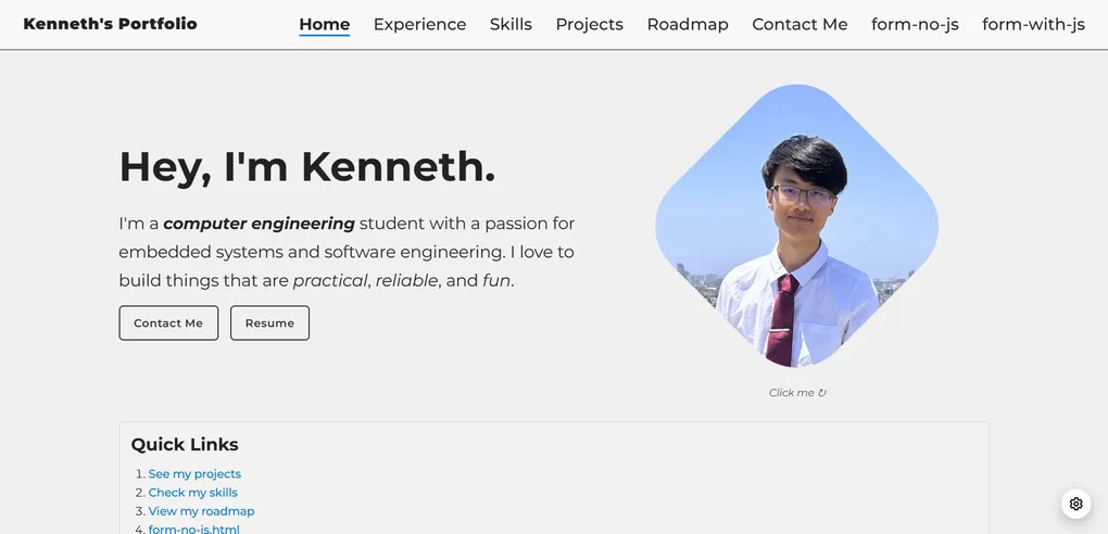 My main portfolio is intentionally old-school: pure HTML, CSS, and vanilla JavaScript.
